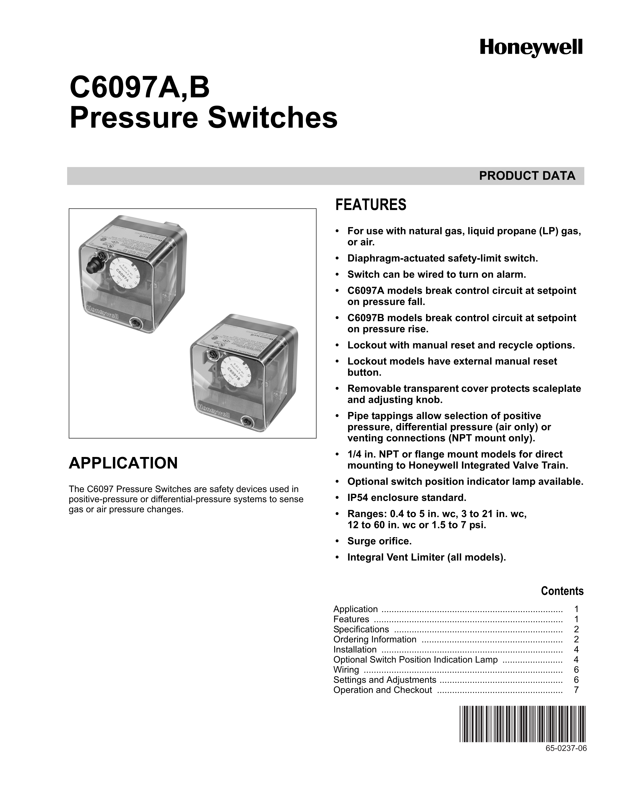 霍尼韋爾C6097A2410風(fēng)壓開(kāi)關(guān)